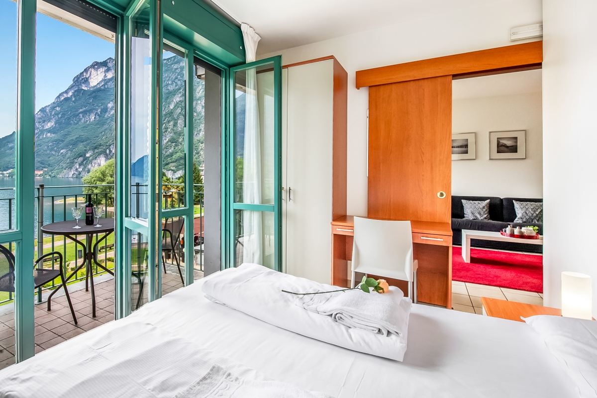 A fabulous family-friendly stay for 4 on Lake Lugano! Families and friends can be certain of a fun and memorable holiday at the Porto Letizia residence in the town of Porlezza. The property is fully accessible with lift access and is air-conditioned for maximum comfort. Inside, the apartment has a modern open-plan living room with direct access to the private balcony with splendid lake views. A modern and open kitchenette-diner is ideal for preparing simple meals during your stay. The sleeping accommodation includes a master bedroom featuring a double bed (which can be separated into two single beds if required) and the living room sofa that converts into a double bed for 2. A full bathroom with a bath, bidet and WC completes the layout of the apartment. Wi-Fi and free parking are available for added convenience. Amenities • Air-conditioning • Central heating • Private lake view balcony • Lift access • Communal resort facilities • On-site coin-operated launderette • Free bike rental • No wheelchair access* • Pets allowed • Car recommended • Child friendly • Coffee machine • Dvd player • Wheelchair access • Dishwasher • Suitable for elderly people • Electric kettle • Iron and ironing board • On secondary road • Microwave • On lakeshore • Sat TV • Very sunny location • Free wifi • Cooker hob • Hair dryer • Outside table and chairs • Outside dining area • Fridge • Air conditioning • Terrace Location The Palazzo features a welcome reception offering helpful visitor information, and a hair salon and guest public parking just at the entrance of the building. To the Porto Letizia lakefront guests can enjoy the stylish Panama Cafe bar which is perfect for a morning cappuccino or evening aperitif, with its idyllic lake views from its sunny terrace. There is also the restaurant Osteria del Porto with an extensive wine list. Guests can enjoy the fabulous holiday complex activities which include a sandy beach ideal with a lido bar for sunbathing and a children’s park. The beautiful lakefront and pet-friendly park is ideal for enjoying lake-view picnics and also provide a pleasant place to relax and exercise with winding paths for cyclists, dog walkers and joggers. From Porto Letizia, the popular town of Porlezza (2-5 minutes walk) provides a range of amenities with supermarkets, high street shops and lakefront cafes and gelaterias. A frequent bus service conveniently operates to Lugano city and to Lake Como, in just under 25 minutes; providing great day trips, with boutique shopping and a vibrant nightlife in Lugano and romantic villas, restaurants and resort towns in Lake Como. The pretty nature reserve of Lago di Piano is also a great place to walk, cycle around and explore. Local activities to be enjoyed include hiking, swimming, tennis, golf, horse riding, fishing, sailing and boat hire.