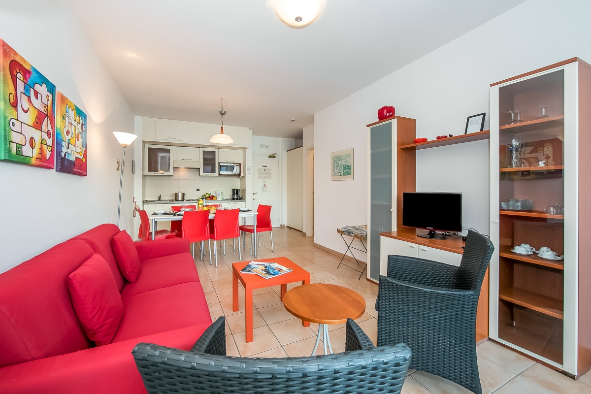 This modern 1-bedroom Palazzo apartment for 4 guests offers an absolute lake-view setting with a private balcony/terrace in Porto Letizia! Internally, the apartment enjoys a cosy, open-plan living room complemented with furnishings like a double sofa bed and a modern kitchen diner for 4. The master double bedroom has a double bed or twin joinable beds. A modern fitted bathroom suite with a bathtub/shower box completes the layout of this welcoming holiday retreat. Guests will find the apartment easily reachable by lift. Air-conditioning, free Wi-Fi and parking are available for added convenience. Amenities • Air-conditioning • Central heating • Private lake view balcony • Lift access • Communal resort facilities • On-site coin-operated launderette • Free bike rental (max 2 hours/day) Location Located in the town of Porlezza, this apartment is ideal to explore the Swiss-Italian lakes of Como and Lugano, which are about half an hour’s drive from its location. The Palazzo offers a Wi-Fi-enabled reception area with tourist information, a modern café bar, the restaurant Osteria del Porto and more. During the months of July and August, there is also in-house kids’ entertainment available for families coming with young ones. The holiday resort also features a shared pet-friendly park with foot and bike paths, a communal beach with a lake-view restaurant and a lido bar near the lake area, watersport hire and two children's play areas. From the resort’s hassle-free location, guests can reach the town amenities, the bus and ferry links and the main lake road of Porlezza and its historic town centre in a 2-5 minute walk. Day trips can be taken to the year-round lake capital of Lugano, the famous Menaggio Cadenabbia and golf club at Lake Como, and Mount Tamaro Adventure Park. Besides, the nearby Grotte di Rescia is a beautiful network of underground caves located at just a 4-minute’ drive and perfect for nature lovers. The nearest international airport is Milan Malpensa, located about 1.5 hour's drive from the complex.