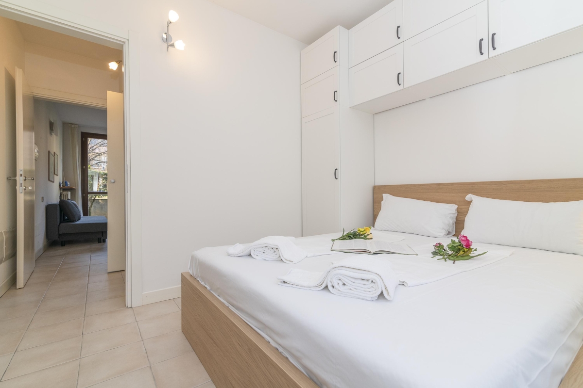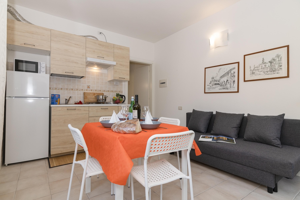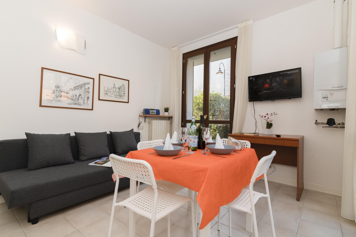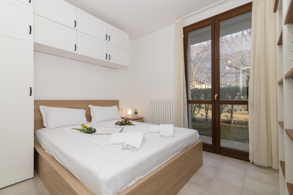 A laid-back contemporary apartment for 4 people, set in the park of Porto Letizia, on the northern shores of Lake Lugano. This ground-floor apartment is ideal for a family or friends in search of a relaxing holiday, with a multitude of activities to choose from. The main living area has double glass doors that lead out onto the private terrace. It is furnished with sofa, flat-screen TV, dining table and chairs and there is an open-plan kitchen. The fitted kitchen is equipped with a cooker hob, microwave, fridge and coffee machine. Sleeping Bedroom: The spacious master bedroom has a comfortable double bed, extensive storage and a glass door out the private garden. Extra: The sofa in the living room converts into a comfortable double bed. Bathroom The new tiled bathroom has a glass shower, basin, bidet and WC. Amenities • Central heating • Pets possible • Child-friendly • Communal resort facilities • On-site coin-operated launderette • Free guests’ parking - car recommended • Free bike rental • Guided hikes Location The apartment is in the park of Porto Letizia, in the charming town of Porlezza. The resort enjoys direct access to the lake with a communal beach, where visitors can hire paddle boards and other water sports equipment. During the months of July and August, there is also a children’s entertainment program. There are dining options on-site, including a stylish café bar and Italian restaurant. Away from the lakeside guests can enjoy hiking or mountain biking through unspoiled forest and alpine scenery. For self-catering, the Porlezza market takes place on the lakeside every Saturday. Here you can find beautiful Italian fashions as well as the best local food and wines. The town centre is just a 5-minute walk from the resort. Here visitors can take ferries to explore the lake. The Swiss city of Lugano, with its many museums and markets, is just a 25-minute drive away. The closest international airports are Milan Malpensa 1 hour 35 minutes away by car, or Milan Linate, a 2-hour journey.