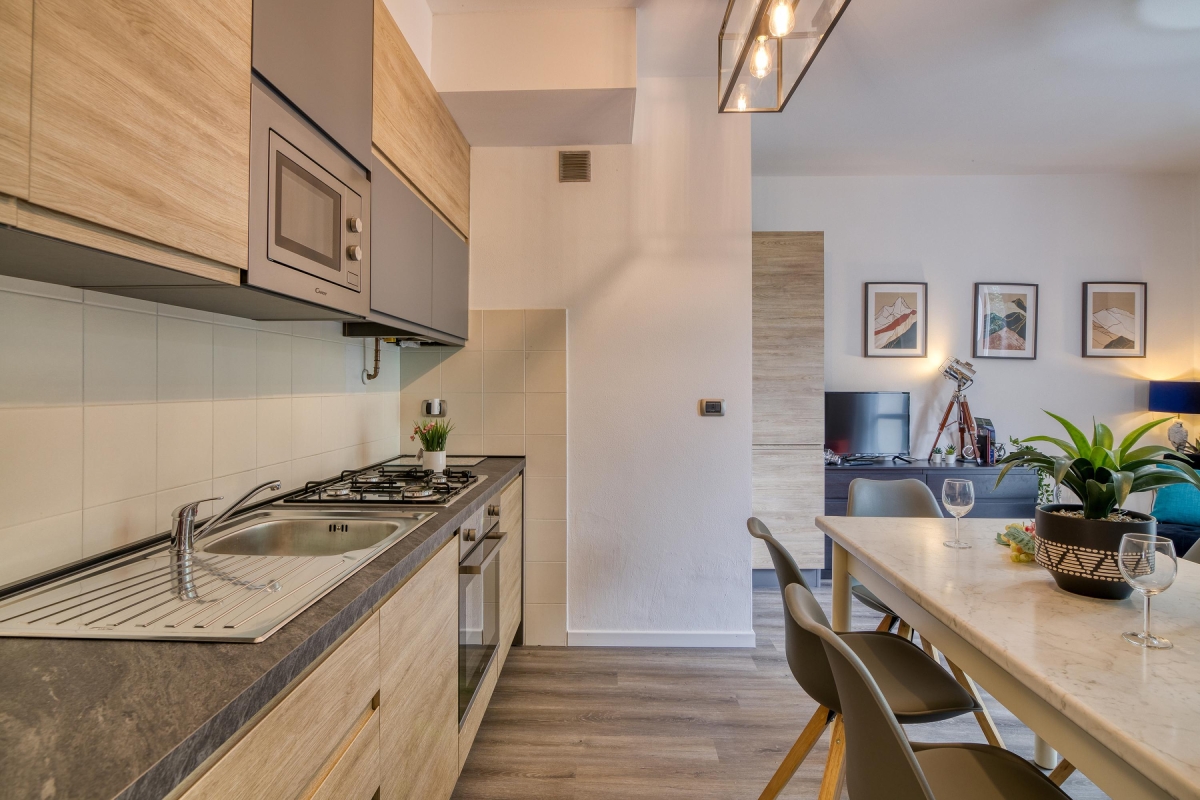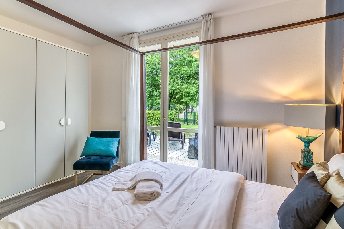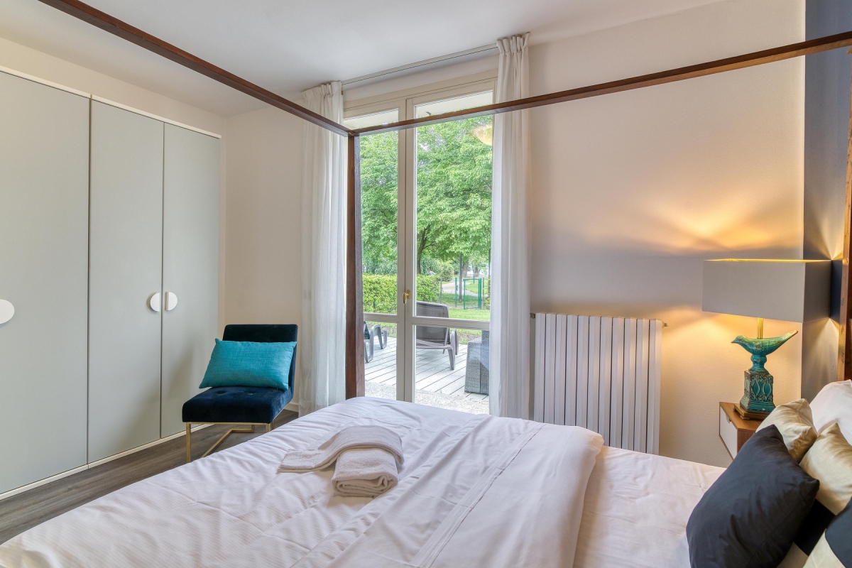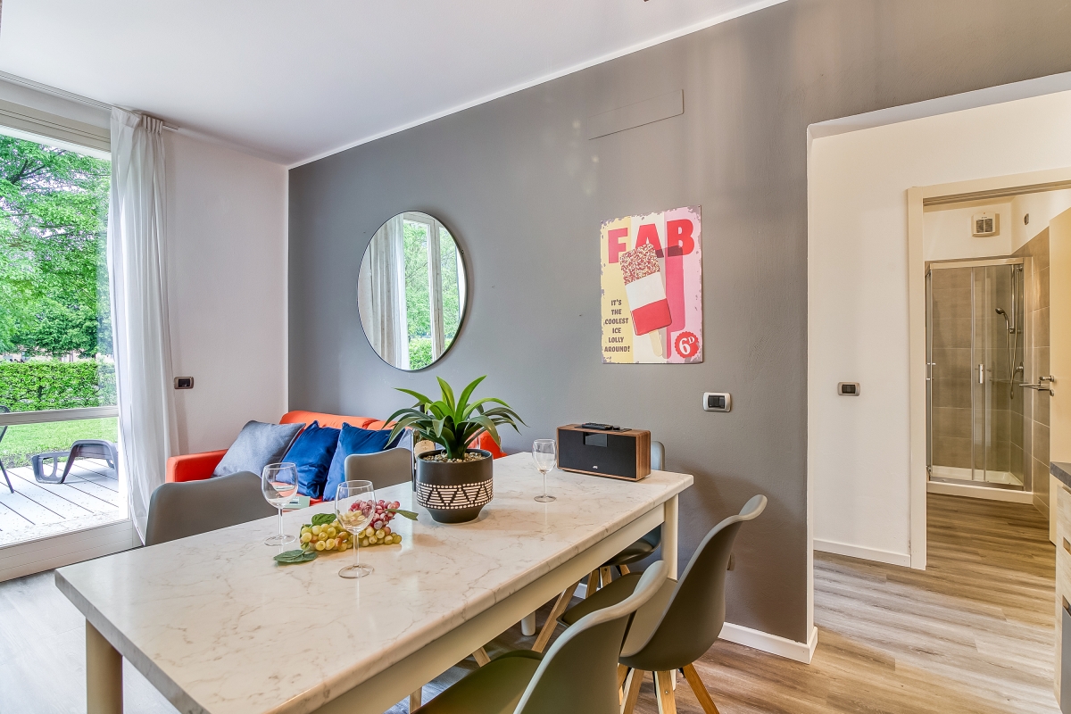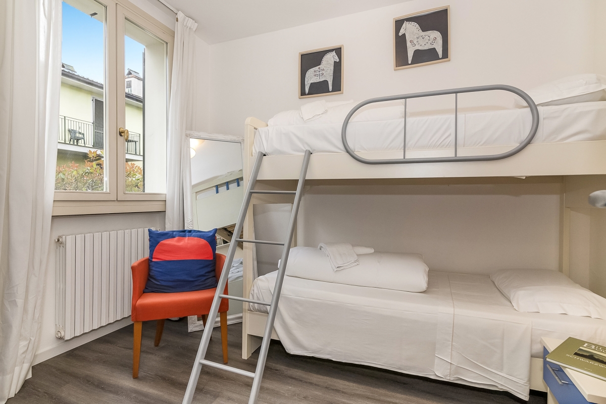 Ideal for laid-back family stays, this garden apartment offers an effortless holiday ambience for 8. Inside, the easy-going lake view retreat features a modern open-plan living room with a double sofa bed and a modern kitchen diner for 6. There are 3 bedrooms in the apartment: A spacious double bedroom with a wardrobe features 2 twin bedrooms with bunk beds/2 single beds. Completing the internal layout is a full family bathroom with a shower/bath, WC and bidet. The apartment offers direct access to a big private garden with a terrace and also has Wi-Fi. Amenities Electric Radiators • Pets considered • Communal resort facilities • On-site coin-operated launderette • Free guest parking • Free bike rental* • Private Garden Location- Located in Porlezza on Lake Lugano, the villa apartment is situated within the park of Porto Letizia. The family-friendly resort enjoys a lakeside public park with meandering footpaths and a communal beach with SUP and watersport hire, 2 children’s play areas and the main Palazzo building with on-site reception, a stylish café bar, Panama Italian restaurant and more. From the resort’s central location along ‘Via Prati’, guests will easily be able to reach the town amenities, the bus and ferry links and the main lake road of Porlezza (2-5 minutes walk away). Perfect for a fun and varied holiday on the Italian-Swiss Lakes, the resort is within easy driving distance from the year-round lake capital of Lugano and the picturesque small city of Menaggio on Lake Como (22-28 minutes drive away).