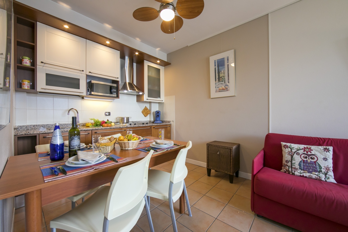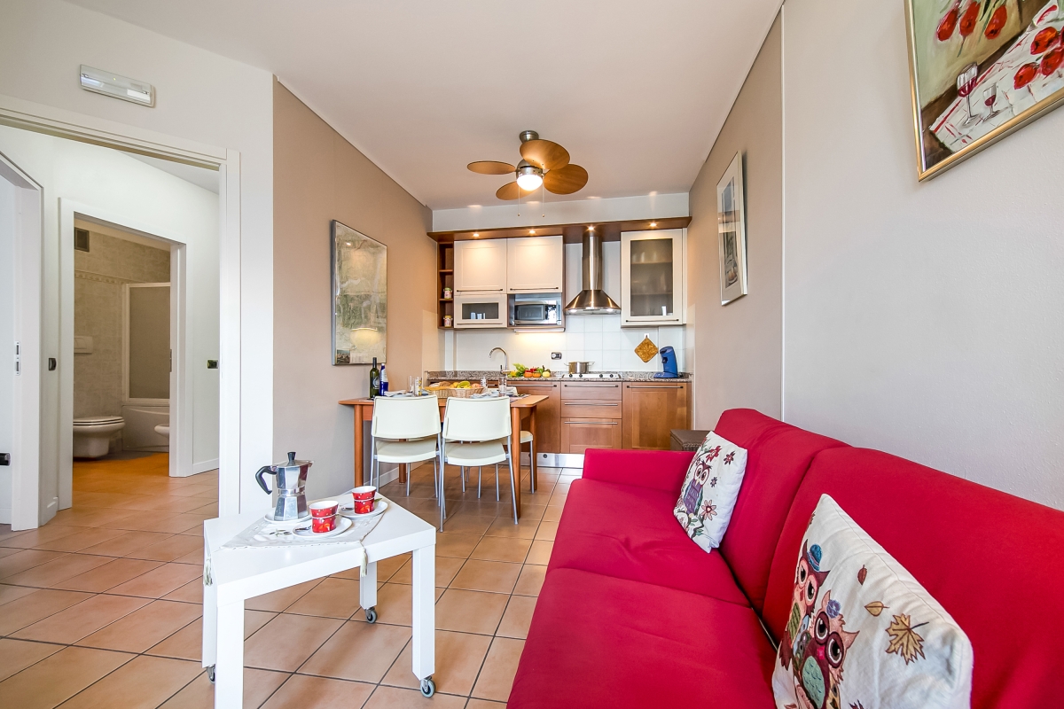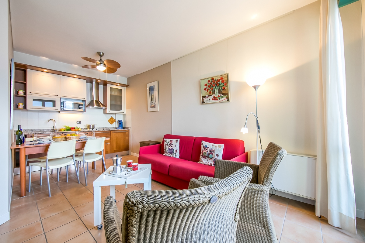 This modern 1-bedroom Palazzo apartment for 4 guests offers an absolute lake-view setting with a private balcony/terrace in Porto Letizia! Internally, the apartment enjoys a cosy, open-plan living room complemented with furnishings like a double sofa bed and a modern kitchen diner for 4. The master double bedroom has a double bed or twin joinable beds. A modern fitted bathroom suite with a bathtub/shower box completes the layout of this welcoming holiday retreat. Guests will find the apartment easily reachable by lift. Air-conditioning, free Wi-Fi and parking are available for added convenience. Amenities • Air-conditioning • Central heating • Private lake view balcony • Lift access • Communal resort facilities • On-site coin-operated launderette • Free bike rental (max 2 hours/day) Location Located in the town of Porlezza, this apartment is ideal to explore the Swiss-Italian lakes of Como and Lugano, which are about half an hour’s drive from its location. The Palazzo offers a Wi-Fi-enabled reception area with tourist information, a modern café bar, the restaurant Osteria del Porto and more. During the months of July and August, there is also in-house kids’ entertainment available for families coming with young ones. The holiday resort also features a shared pet-friendly park with foot and bike paths, a communal beach with a lake-view restaurant and a lido bar near the lake area, watersport hire and two children's play areas. From the resort’s hassle-free location, guests can reach the town amenities, the bus and ferry links and the main lake road of Porlezza and its historic town centre in a 2-5 minute walk. Day trips can be taken to the year-round lake capital of Lugano, the famous Menaggio Cadenabbia and golf club at Lake Como, and Mount Tamaro Adventure Park. Besides, the nearby Grotte di Rescia is a beautiful network of underground caves located at just a 4-minute’ drive and perfect for nature lovers. The nearest international airport is Milan Malpensa, located about 1.5 hour's drive from the complex.