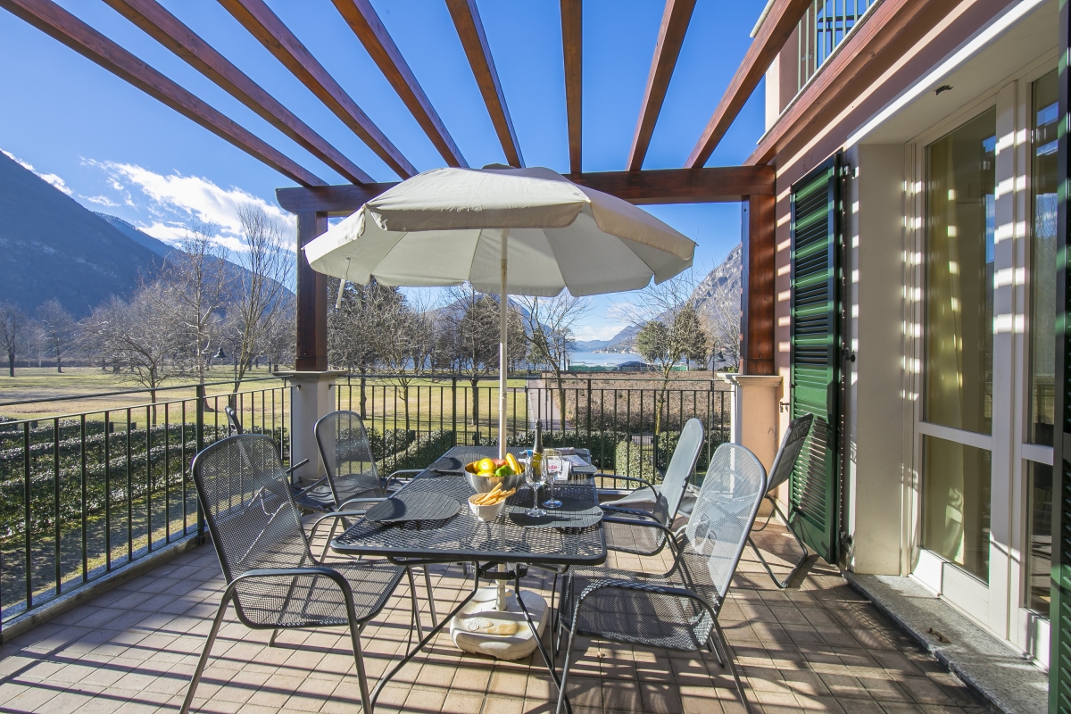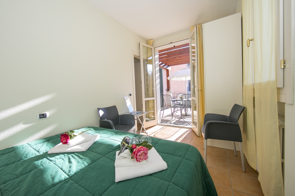 Located in the park of Porto Letizia, this modern 1-bedroom apartment with a private garden offers a charming lake-view holiday base for relaxed summertime stays. Inside, the apartment for 4 benefits from an open plan living room with garden access, alongside a functional kitchenette with an indoor dining area that is perfect for enjoying relaxed home-cooked meals. A cosy double bedroom with a wardrobe and terrace access is complemented by a double sofa bed in the living room. A modern full-family bathroom with a bath with shower, WC and bidet complete the internal layout of this accessible garden apartment. Free guest parking is also available for added convenience. Amenities • No Wi-Fi • Electric Radiators • Clothes horse • Pets considered (upon request) • Private Balcony • Communal resort facilities • On-site coin-operated launderette • Free guest parking • Free bike rental • No wheelchair access* Location- Located in Porlezza on Lake Lugano, this villa apartment is situated within the park of the Porto Letizia holiday residence. The shared family-friendly park features meandering footpaths, a communal beach with SUP and watersport hire, 2 children’s play areas and the main Palazzo building with on-site reception, a stylish café bar, Panama Italian restaurant and more. From the resort’s central location along ‘Via Prati’, guests will easily be able to reach the town amenities, the bus and ferry links and the main lake road of Porlezza (2-5 minutes walk away). Perfect for a fun and varied holiday on the Italian-Swiss Lakes, the resort is within easy driving distance from the year-round lake capital of Lugano and the picturesque small city of Menaggio on Lake Como (22-28 minutes’ drive away).
