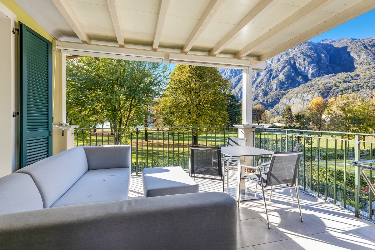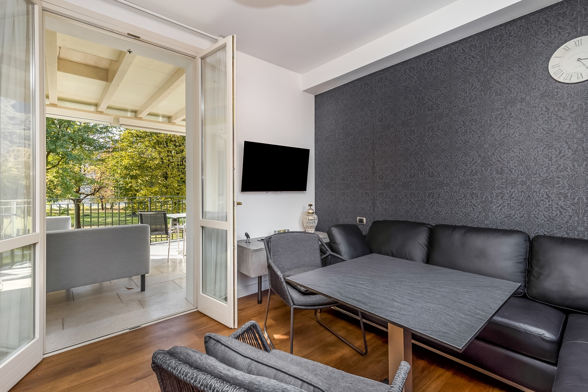 Perfect for couples and small groups of 4, this modern 2-bedroom retreat in a villa enables guests to relax and soak up some sun from a private lake view terrace! Inside, the apartment features a spacious living room and a modern kitchenette with a dining area for 4. A bedroom featuring a double bed is accompanied by a modern-fitted bathroom suite with a shower/ bathtub and a bedroom with twin joinable beds. Amenities Electric Radiators • Pets not allowed • Communal resort facilities • On-site coin-operated launderette • Free guest parking • Free bike rental • No wheelchair access* Location Located in Porlezza on Lake Lugano, the villa apartment is situated within the park of Porto Letizia. The family-friendly resort enjoys a lakeside public park with meandering footpaths and a communal beach with SUP and watersport hire, 2 children’s play areas and the main Palazzo building with on-site reception, a stylish café bar, Panama Italian restaurant and more. From the resort’s central location along ‘Via Prati’, guests will easily be able to reach the town amenities, the bus and ferry links and the main lake road of Porlezza (2-5 minutes walk away). Perfect for a fun and varied holiday on the Italian-Swiss Lakes, the resort is within easy driving distance from the year-round lake capital of Lugano and the picturesque small city of Menaggio on Lake Como (22-28 minutes drive away