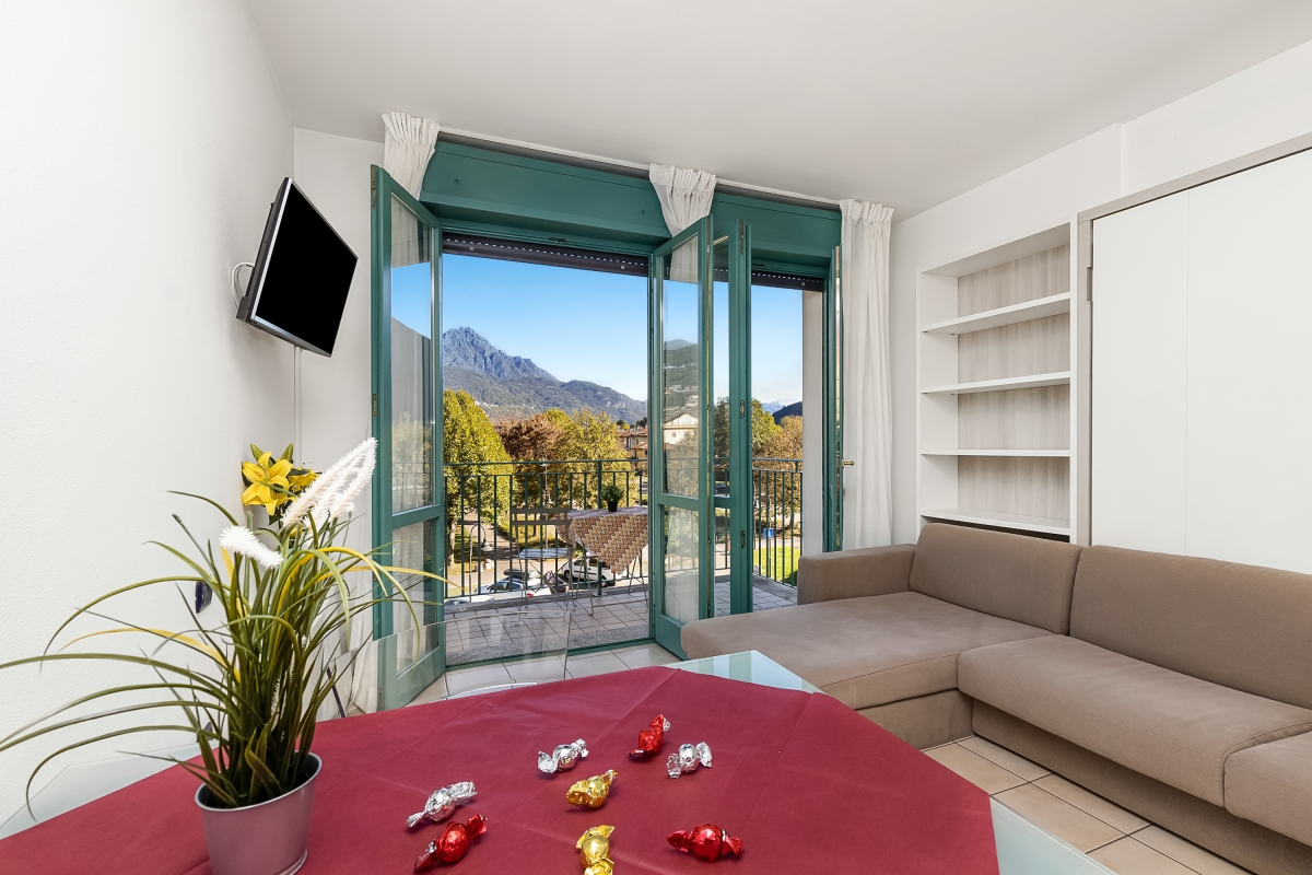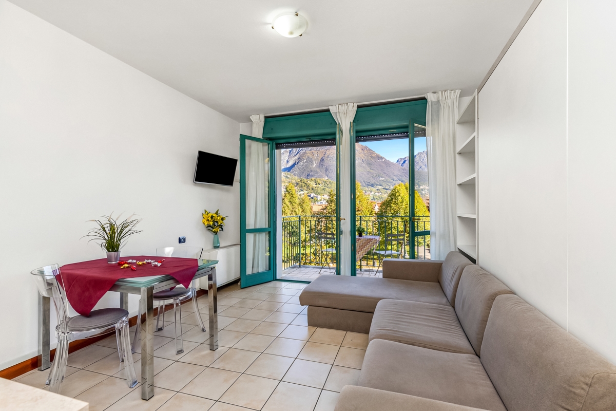 In a modern Palazzo of Porto Letizia, this mountain-view studio is perfect for a couples' vacation! Located in the town of Porlezza, on the Swiss-Italian border, this air-conditioned apartment is ideal for year-round lake breaks. The lakeshore apartment is easily reached by lift and also features a mountain-view balcony with exclusive access for the guests. Inside, the studio for 2 features modern interiors comprising a living space with a double sofa bed and a kitchenette with a breakfast bar. A spacious full-family bathroom completes the layout. Wi-Fi and free guest parking are available for added convenience. Amenities • Air-conditioning • Private balcony • Lift access • Communal resort facilities (Free bike rental for 2 hours/day, ) • On-site coin-operated launderette • Large Parking Area Location The apartment is situated in the main Palazzo building of Porto Letizia located in Porlezza on Lake Lugano. The Palazzo enjoys an on-site reception area with Wi-Fi, a stylish café bar, contemporary the restaurant Osteria del Porto and more. The family-friendly resort also features a shared public, pet-friendly park with footpaths, a communal beach with SUP and watersport hire, two children's play areas and a beach with a lake-view restaurant. From the resort’s central location along ‘Via Prati’, guests will easily be able to reach the town amenities, the bus and ferry links and the main lake road of Porlezza and its historic town centre (2-5 minutes walk away). Perfect for a fun and varied holiday on the Italian-Swiss Lakes, the resort is within easy driving distance from the year-round lake capital of Lugano and the picturesque small city of Menaggio on Lake Como, with the famous Menaggio Cadenabbia and golf club (22-28 minutes drive away). The nearest international airport is Milan Malpensa, located about 1.5 hour drive from the complex.