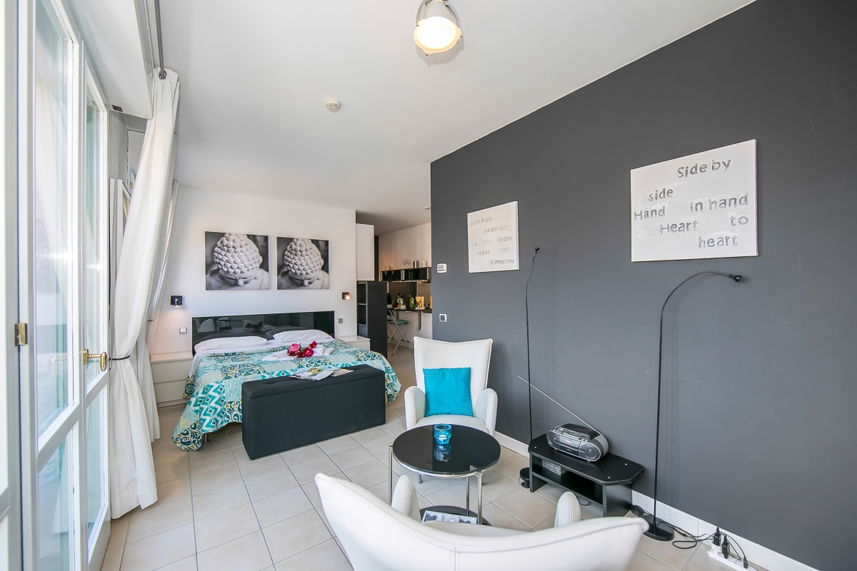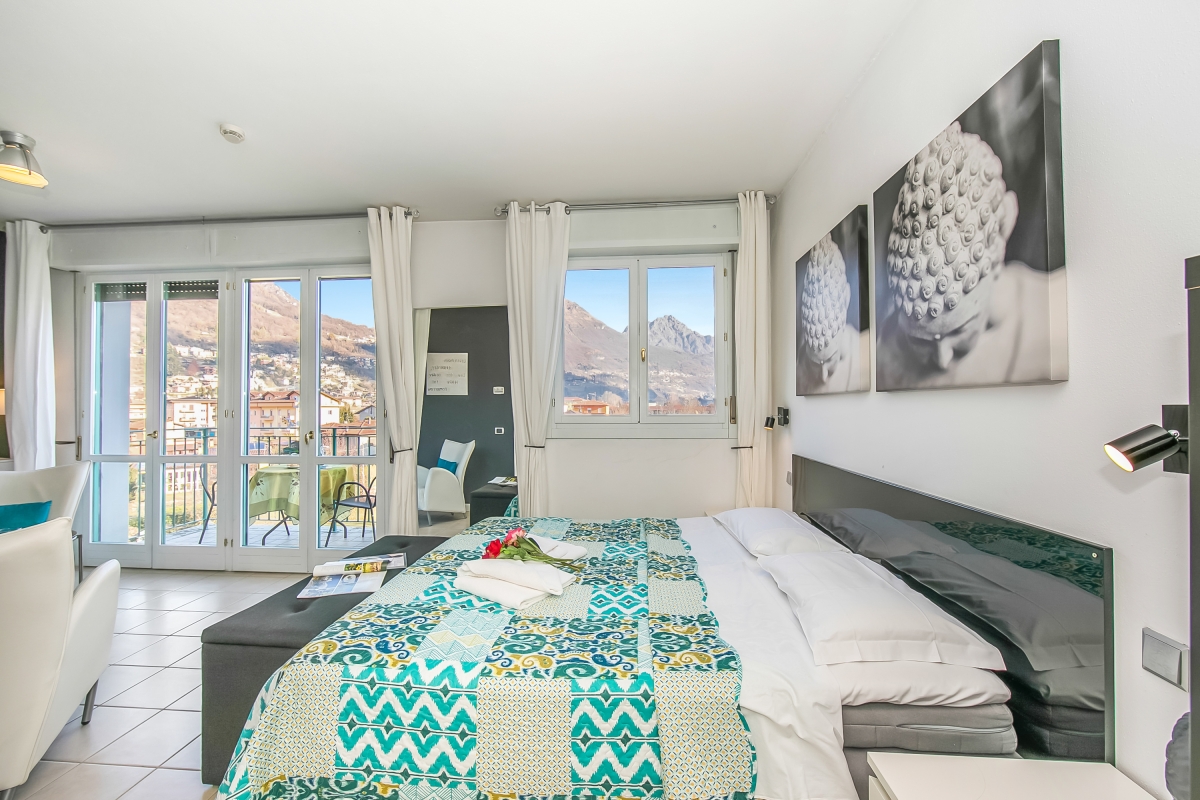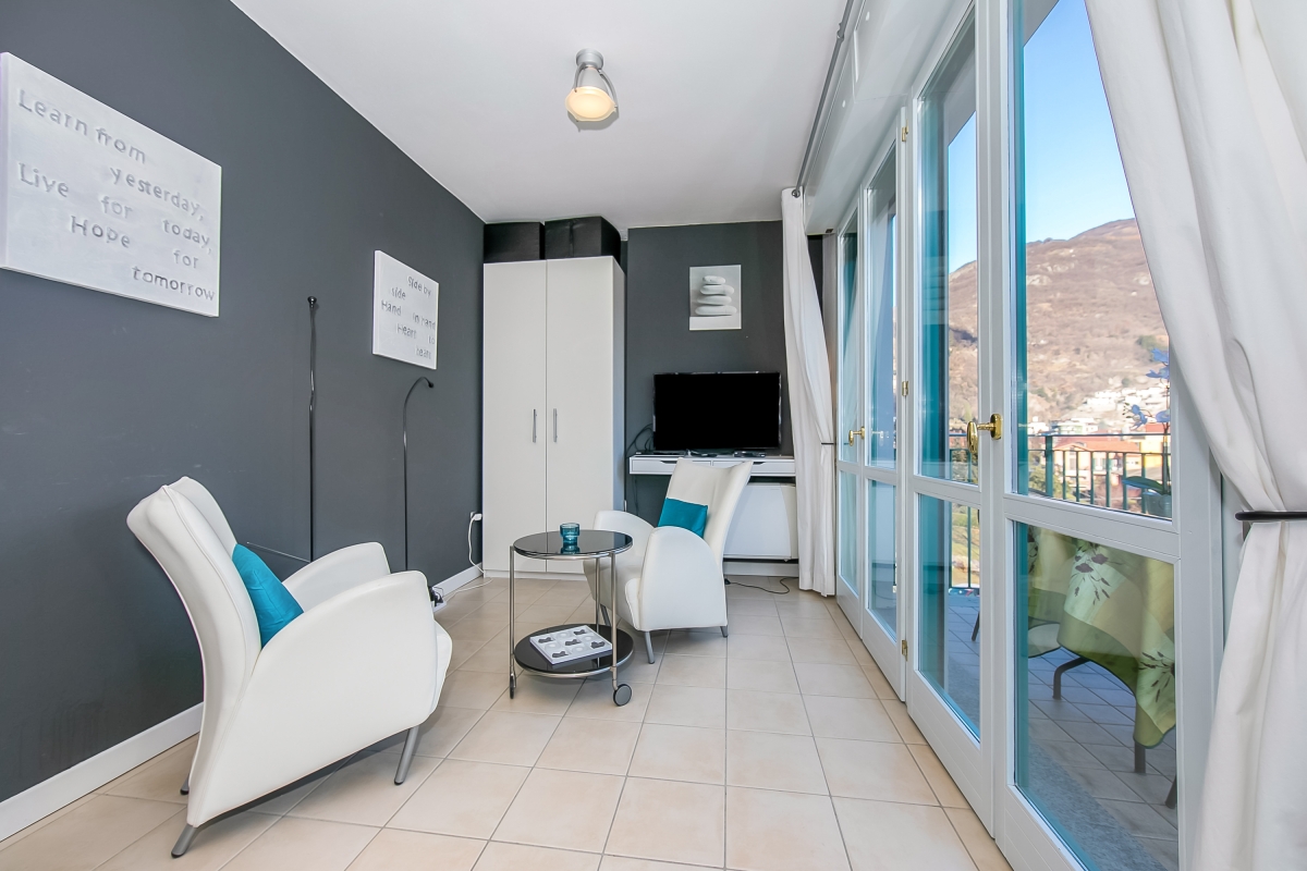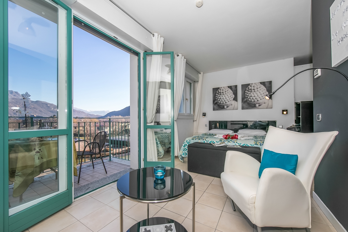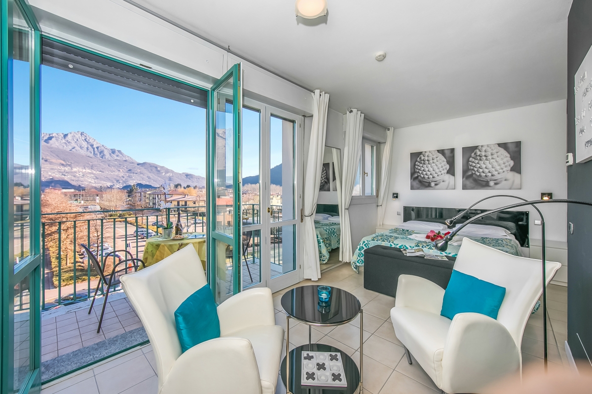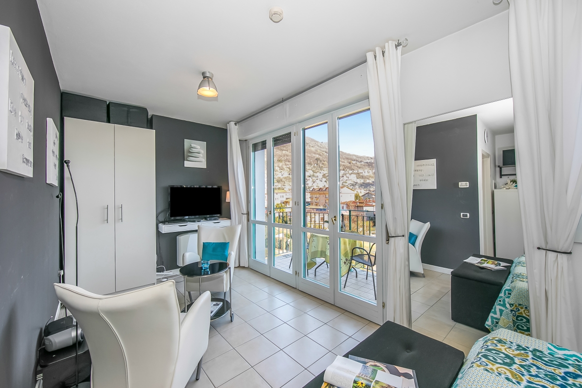 In a modern Palazzo of Porto Letizia, this mountain-view studio is perfect for a couples' vacation! Located in the town of Porlezza, on the Swiss-Italian border, this air-conditioned apartment is ideal for year-round lake breaks. The lakeshore apartment is easily reached by lift and also features a mountain-view balcony with exclusive access for the guests. Inside, the studio for 2 features modern interiors comprising a living space with a double sofa bed and a kitchenette with a breakfast bar. A spacious full-family bathroom completes the layout. Wi-Fi and free guest parking are available for added convenience. Amenities • Air-conditioning • Private balcony • Lift access • Communal resort facilities (Free bike rental for 2 hours/day, ) • On-site coin-operated launderette • Large Parking Area Location The apartment is situated in the main Palazzo building of Porto Letizia located in Porlezza on Lake Lugano. The Palazzo enjoys an on-site reception area with Wi-Fi, a stylish café bar, contemporary the restaurant Osteria del Porto and more. The family-friendly resort also features a shared public, pet-friendly park with footpaths, a communal beach with SUP and watersport hire, two children's play areas and a beach with a lake-view restaurant. From the resort’s central location along ‘Via Prati’, guests will easily be able to reach the town amenities, the bus and ferry links and the main lake road of Porlezza and its historic town centre (2-5 minutes walk away). Perfect for a fun and varied holiday on the Italian-Swiss Lakes, the resort is within easy driving distance from the year-round lake capital of Lugano and the picturesque small city of Menaggio on Lake Como, with the famous Menaggio Cadenabbia and golf club (22-28 minutes drive away). The nearest international airport is Milan Malpensa, located about 1.5 hour drive from the complex.