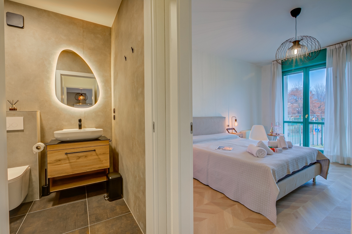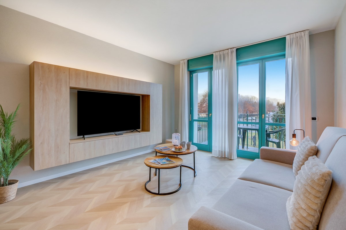 Soak up peaceful mountain views from this modern apartment with a private balcony! In the main Palazzo building of Porto Letizia, this one-bedroom apartment for 4 sets the scene for a Swiss-Italian vacation with loved ones. The apartment has an exclusive balcony and an open living room, fully air-conditioned and furnished to compliment pleasant year-round stays. This is complemented by a double sofa bed and a modern, open kitchenette with a dining area in the living room. The bedroom has a double bed or 2 single beds. The full bathroom features WC, bidet and a bath/shower. The modern apartment is easily reached by lift. Amenities • Air-conditioning • Central heating • WiFi access • Private mountain-view balcony • Lift access • Communal resort facilities • On-site coin-operated launderette • Free bike rental (max 2 hours per day) Location Located in the town of Porlezza, this apartment is ideal to explore the Swiss-Italian lakes of Como and Lugano, which are about half an hour’s drive from its location. The Palazzo offers a Wi-Fi-enabled reception area with tourist information, a modern café bar, the restaurant Osteria del Porto and more. During the months of July and August, there is also in-house kids’ entertainment available for families coming with young ones. The holiday resort also features a shared pet-friendly park with foot and bike paths, a communal beach with a lake-view restaurant and a lido bar near the lake area, watersport hire and two children's play areas. From the resort’s hassle-free location, guests can reach the town amenities, the bus and ferry links and the main lake road of Porlezza and its historic town centre in a 2-5 minute walk. Day trips can be taken to the year-round lake capital of Lugano, the famous Menaggio Cadenabbia and golf club at Lake Como, and Mount Tamaro Adventure Park. Besides, the nearby Grotte di Rescia is a beautiful network of underground caves located at just a 4-minute’ drive and perfect for nature lovers. The nearest international airport is Milan Malpensa, located about 1.5 hour's drive from the complex.