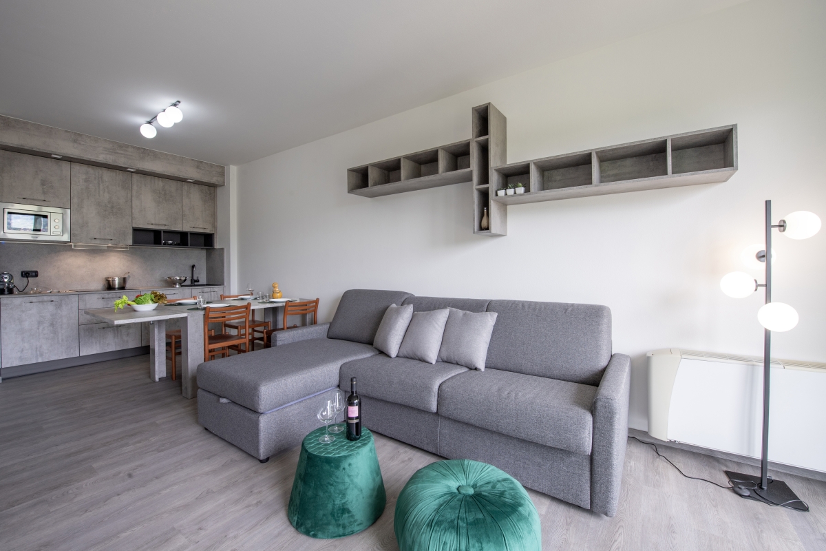 Soak up peaceful mountain views from this modern apartment with a private balcony! In the main Palazzo building of Porto Letizia, this one-bedroom apartment for 4 sets the scene for a Swiss-Italian vacation with loved ones. The apartment has an exclusive balcony and an open living room, fully air-conditioned and furnished to compliment pleasant year-round stays. This is complemented by a double sofa bed and a modern, open kitchenette with a dining area in the living room. The bedroom has a double bed or 2 single beds. The full bathroom features WC, bidet and a bath/shower. The modern apartment is easily reached by lift. Amenities • Air-conditioning • Central heating • WiFi access • Private mountain-view balcony • Lift access • Communal resort facilities • On-site coin-operated launderette • Free bike rental (max 2 hours per day) Location Located in the town of Porlezza, this apartment is ideal to explore the Swiss-Italian lakes of Como and Lugano, which are about half an hour’s drive from its location. The Palazzo offers a Wi-Fi-enabled reception area with tourist information, a modern café bar, the restaurant Osteria del Porto and more. During the months of July and August, there is also in-house kids’ entertainment available for families coming with young ones. The holiday resort also features a shared pet-friendly park with foot and bike paths, a communal beach with a lake-view restaurant and a lido bar near the lake area, watersport hire and two children's play areas. From the resort’s hassle-free location, guests can reach the town amenities, the bus and ferry links and the main lake road of Porlezza and its historic town centre in a 2-5 minute walk. Day trips can be taken to the year-round lake capital of Lugano, the famous Menaggio Cadenabbia and golf club at Lake Como, and Mount Tamaro Adventure Park. Besides, the nearby Grotte di Rescia is a beautiful network of underground caves located at just a 4-minute’ drive and perfect for nature lovers. The nearest international airport is Milan Malpensa, located about 1.5 hour's drive from the complex.
