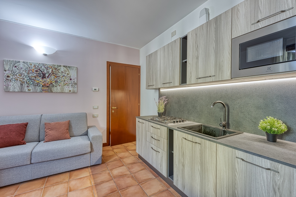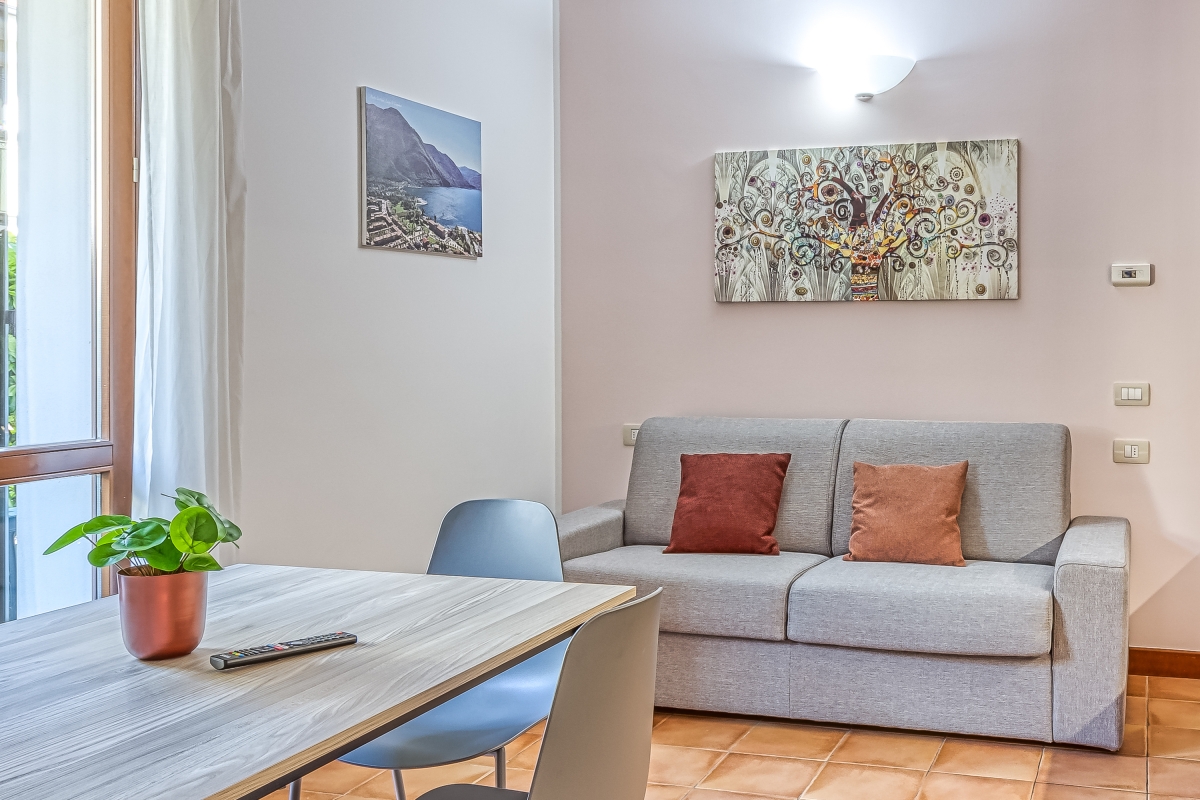 Ideal for laid-back family stays, this one-bedroom apartment offers an effortless holiday ambience for 4. Inside, the easy-going retreat features a modern living room with a well-equipped kitchen for carefree holidays on Lake Lugano. There is a double bed/2 single in the main bedroom and a double sofa bed in the living accompanied by a full family bathroom with a bath/shower, WC and bidet. Outside, the apartment has a private balcony or garden for ultimate peace and relaxation. Amenities • Free Wifi - Electric Radiators • Pets considered • Communal resort facilities • On-site coin-operated launderette • Free guest parking • Free bike rental • No wheelchair access Location Located in Porlezza on Lake Lugano, the apartment is situated within the park of Porto Letizia. The family-friendly resort enjoys a lakeside public park with meandering footpaths and a communal beach with SUP and watersport hire, 2 children’s play areas and the main Palazzo building with on-site reception, a stylish café bar, Panama Italian restaurant and more. From the resort’s central location along ‘Via Prati’, guests will easily be able to reach the town amenities, the bus and ferry links and the main lake road of Porlezza (2-5 minutes walk away). Perfect for a fun and varied holiday on the Italian-Swiss Lakes, the resort is within easy driving distance from the year-round lake capital of Lugano and the picturesque small city of Menaggio on Lake Como (22-28 minutes drive away).