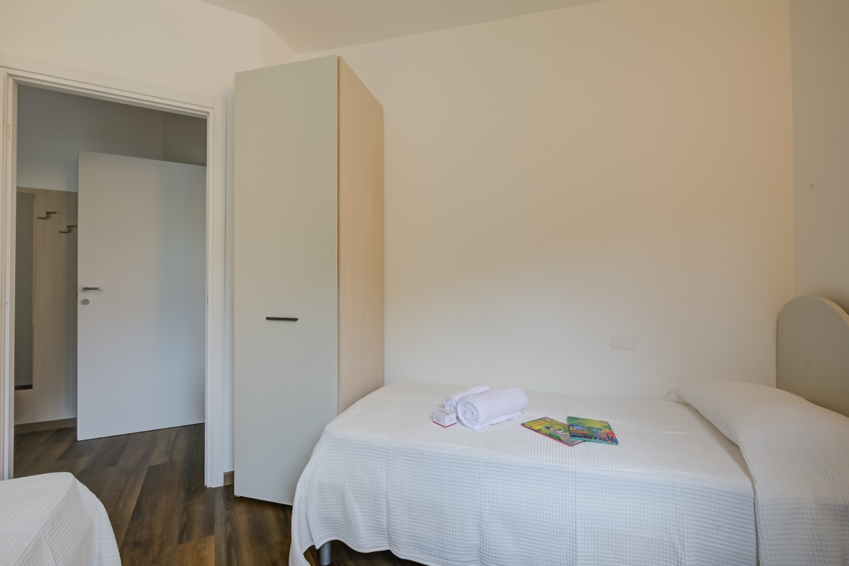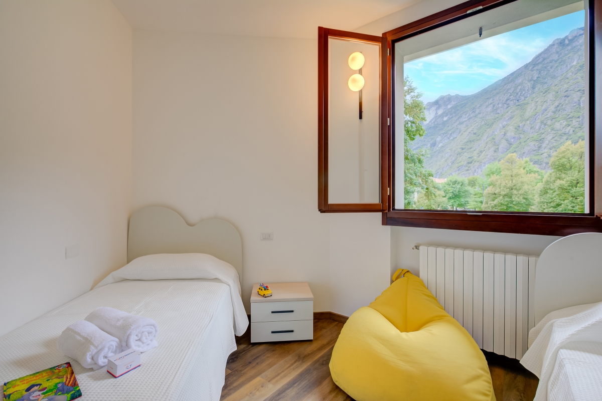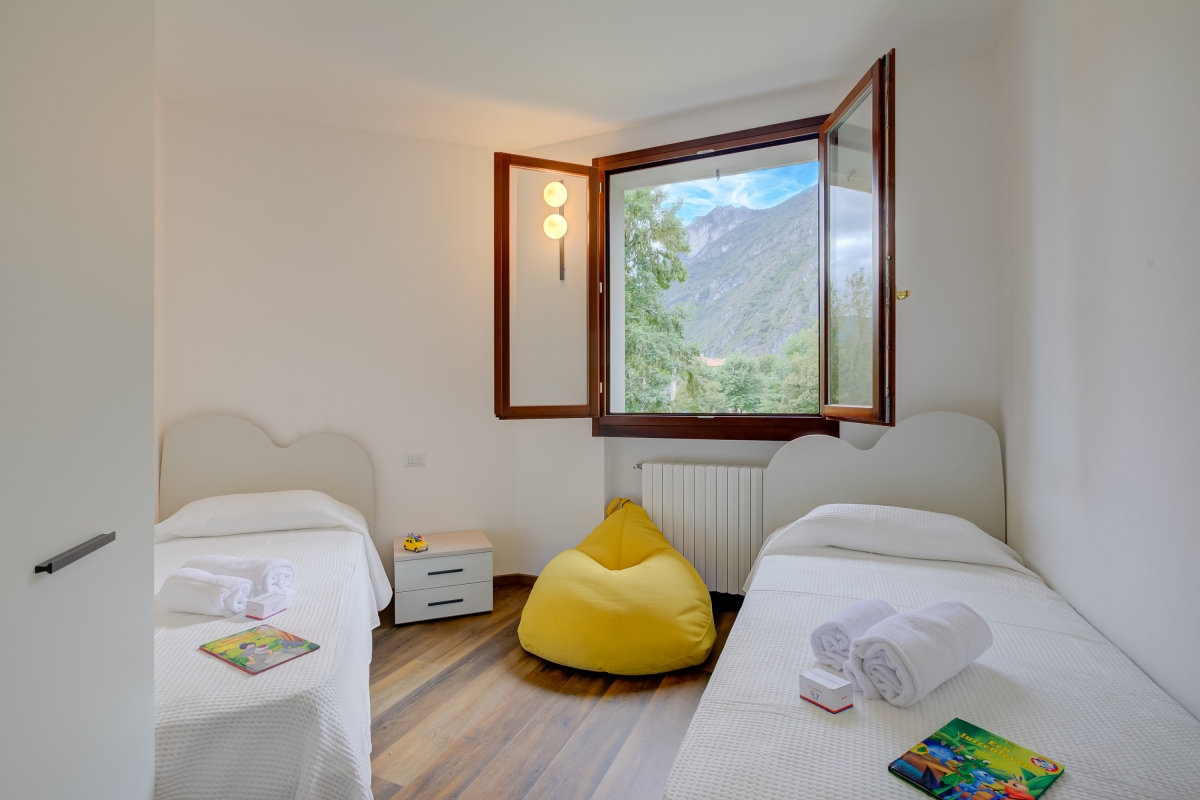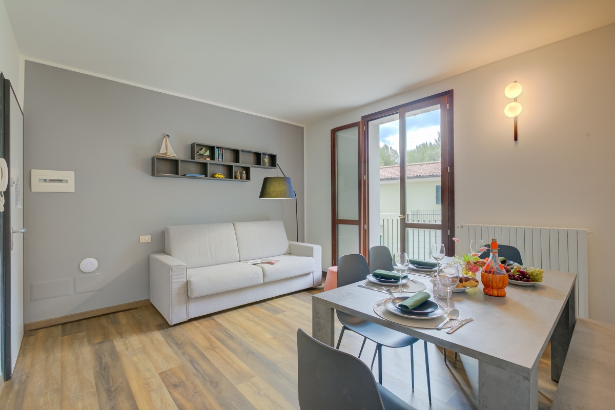 Providing comfy and carefree stays for groups of 6, this 2-bedroom apartment is an effortless holiday apartment to enjoy Lake Lugano. Inside, the apartment features a modern living room with a standard modern kitchen diner for 6. This room also has a double sofa bed for two, which is accompanied by a double bedroom and a twin bedroom with 2 single beds. A full family bathroom with a shower, WC and bidet complete the layout of the apartment. Outside, the apartment has a private balcony or garden for ultimate peace and relaxation. The apartment has free guest parking. Amenities Electric Radiators • Pets considered • Communal resort facilities • On-site coin-operated launderette • Free guest parking • Free bike rental • No wheelchair access* Location Located in Porlezza on Lake Lugano, the villa apartment is situated within the park of Porto Letizia. The family-friendly resort enjoys a lakeside public park with meandering footpaths and a communal beach with SUP and watersport hire, 2 children’s play areas and the main Palazzo building with on-site reception, a stylish café bar, Panama Italian restaurant and more. From the resort’s central location along ‘Via Prati’, guests will easily be able to reach the town amenities, the bus and ferry links and the main lake road of Porlezza (2-5 minutes walk away). Perfect for a fun and varied holiday on the Italian-Swiss Lakes, the resort is within easy driving distance from the year-round lake capital of Lugano and the picturesque small city of Menaggio on Lake Como (22-28 minutes drive away).