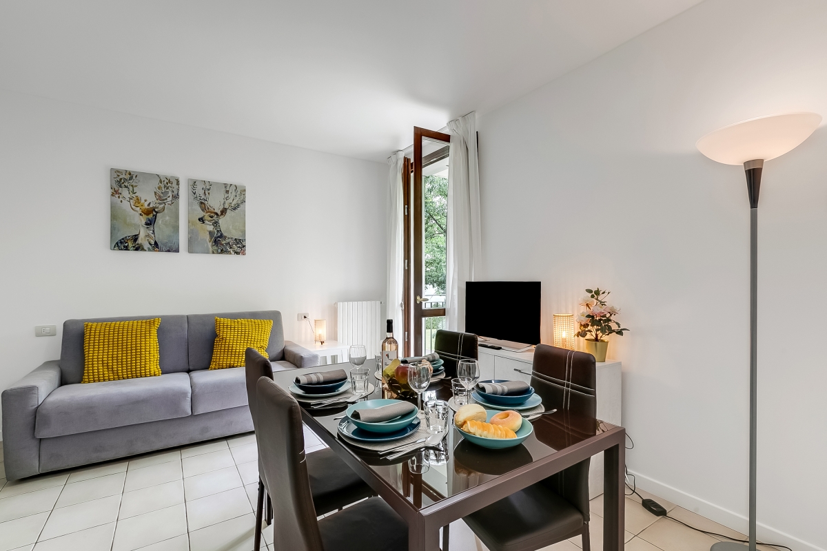Providing comfy and carefree stays for groups of 6, this 2-bedroom apartment is an effortless holiday apartment to enjoy Lake Lugano. Inside, the apartment features a modern living room with a standard modern kitchen diner for 6. This room also has a double sofa bed for two, which is accompanied by 2 bedrooms, each with a double bed. A full family bathroom with a shower, WC and bidet completes the layout of the apartment. Outside, the apartment has a private balcony for ultimate peace and relaxation. The apartment has free guest parking. Amenities Electric Radiators • Pets considered • Communal resort facilities • On-site coin-operated launderette • Free guest parking • Free bike rental • No wheelchair access* Location Located in Porlezza on Lake Lugano, the villa apartment is situated within the park of Porto Letizia. The family-friendly resort enjoys a lakeside public park with meandering footpaths and a communal beach with SUP and watersport hire, 2 children’s play areas and the main Palazzo building with on-site reception, a stylish café bar, Panama Italian restaurant and more. From the resort’s central location along ‘Via Prati’, guests will easily be able to reach the town amenities, the bus and ferry links and the main lake road of Porlezza (2-5 minutes walk away). Perfect for a fun and varied holiday on the Italian-Swiss Lakes, the resort is within easy driving distance from the year-round lake capital of Lugano and the picturesque small city of Menaggio on Lake Como (22-28 minutes drive away).