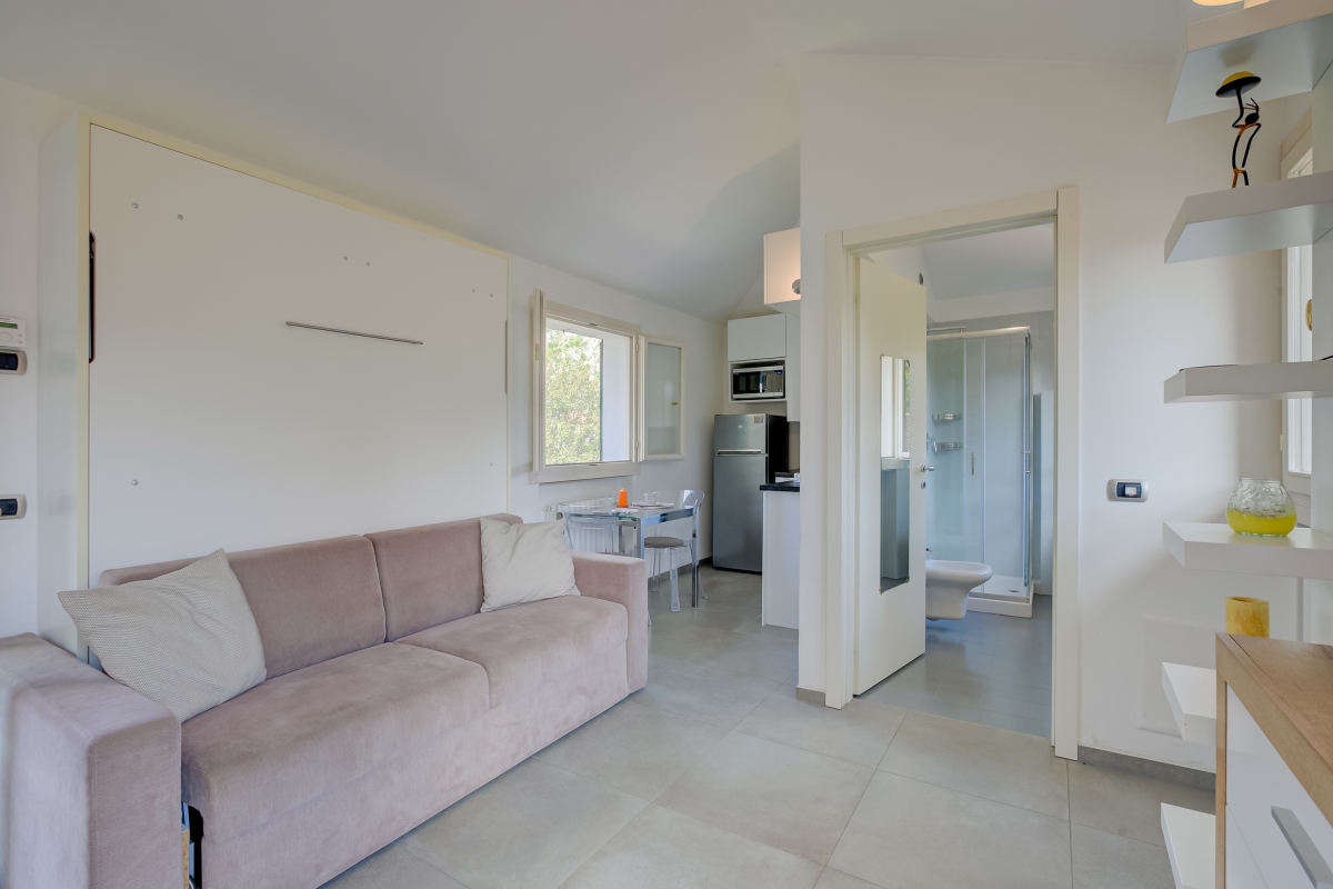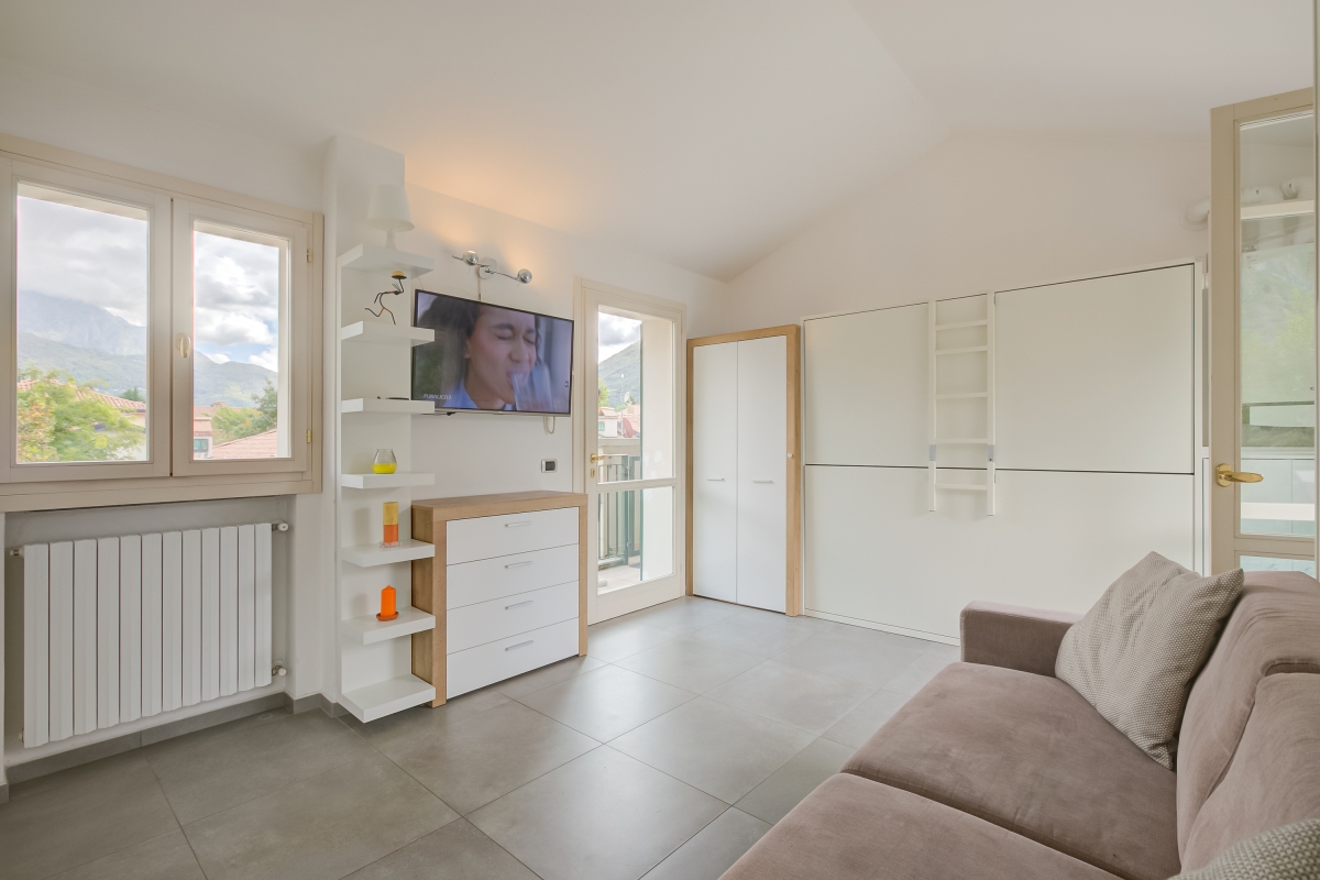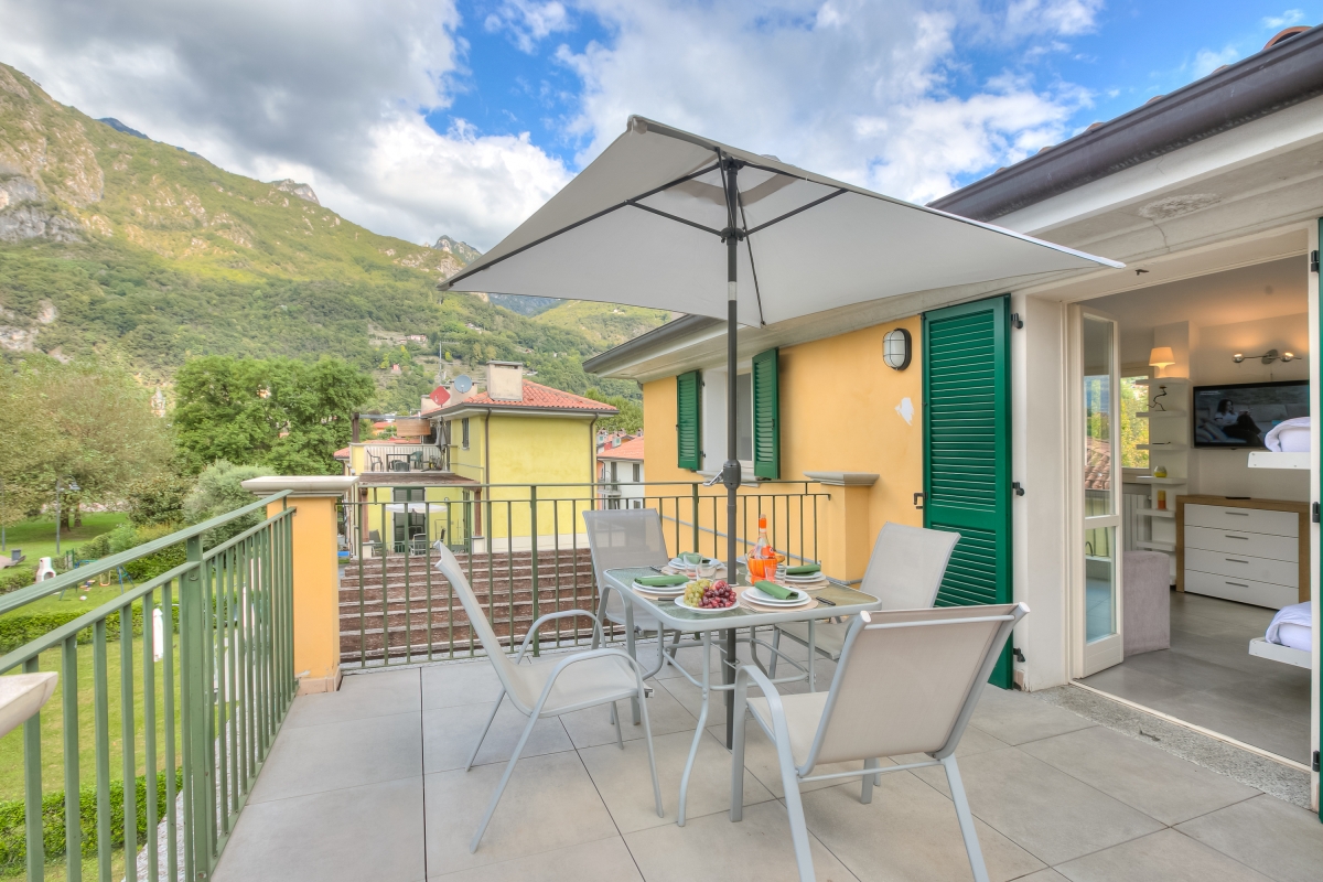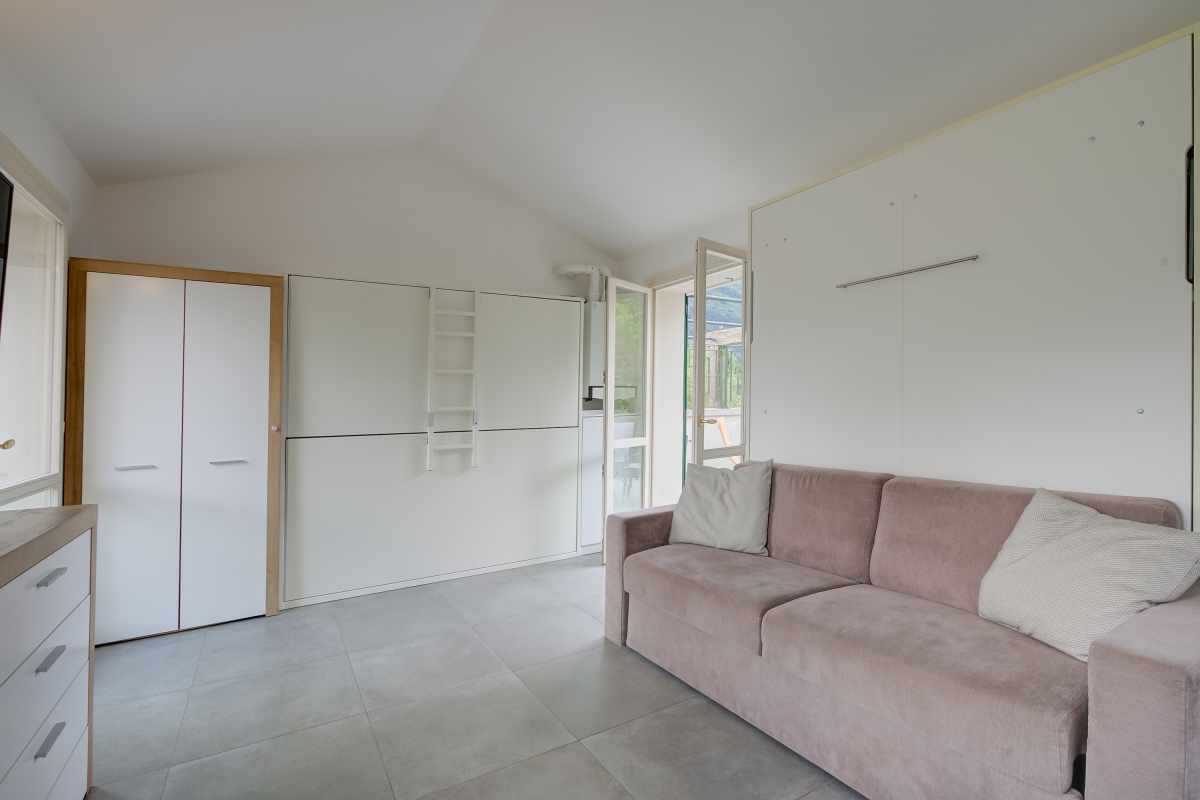 Located in a modern villa overlooking the Porto Letizia park, this lake-view studio offers a laid-back holiday setting for couples and family groups of 4. Inside, the apartment offers an open plan layout, comprising a living room with a double sofa bed alongside a basic kitchenette with a dining area for 4 and a set of bunk beds. The living area also leads directly out onto a private balcony terrace. A modern fitted bathroom with a bath/shower completes the internal layout of this , budget-friendly apartment. Wi-Fi and Free guest parking are also available for added convenience. Amenities • Wi-Fi • Electric Radiators • Clothes horse • Pets considered (upon request) • Private Balcony • Communal resort facilities • On-site coin-operated launderette • Free guest parking • Free bike rental • No wheelchair access • Dolcegusto Coffee Machine Location Located in Porlezza on Lake Lugano, the villa apartment is situated within the park of Porto Letizia. The family-friendly resort enjoys a lakeside public park with meandering footpaths and a communal beach with SUP and watersport hire, 2 children’s play areas and the main Palazzo building with on-site reception, a stylish café bar, Panama Italian restaurant and more. From the resort’s central location along ‘Via Prati’, guests will easily be able to reach the town amenities, the bus and ferry links and the main lake road of Porlezza (2-5 minutes walk away). Perfect for a fun and varied holiday on the Italian-Swiss Lakes, the resort is within easy driving distance from the year-round lake capital of Lugano and the picturesque small city of Menaggio on Lake Como (22-28 minutes drive away).