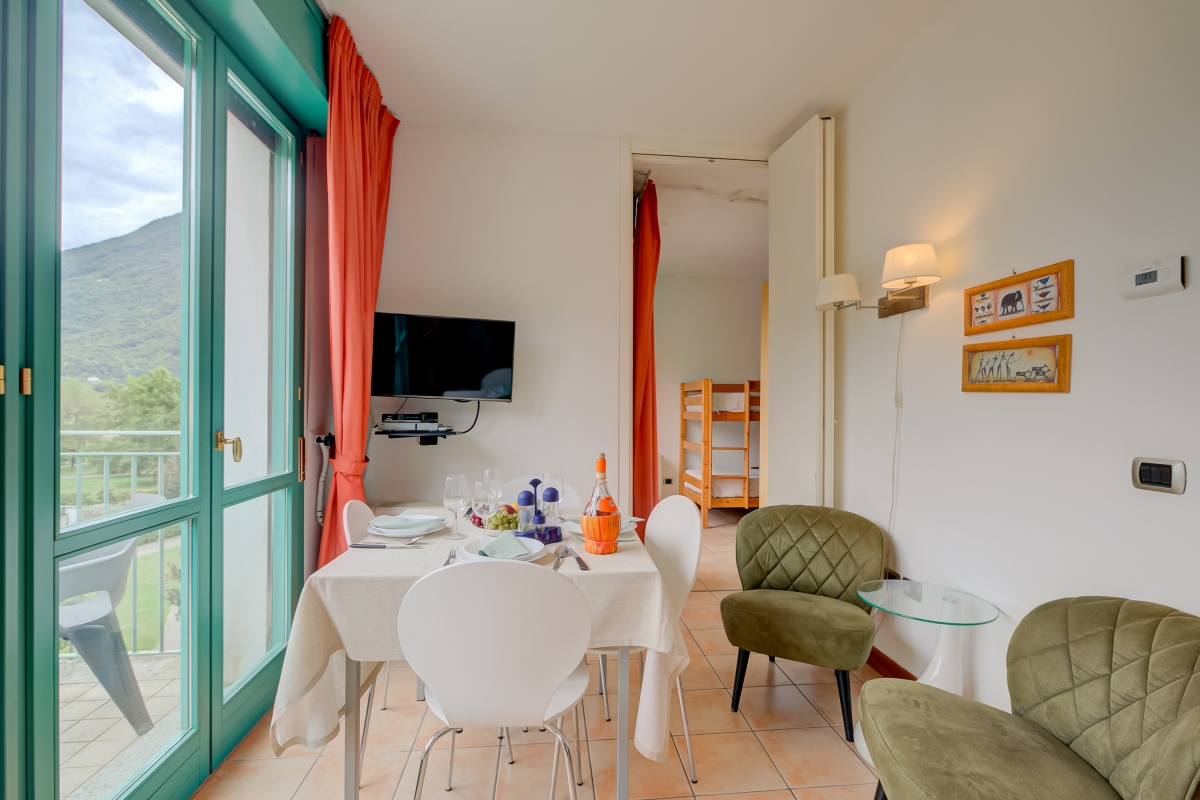 Located within the main Palazzo building, this welcoming balcony retreat is perfect for 2. Inside, the living space offers an open-plan layout, ideal for relaxed holiday vibes. Air conditioning also complements the living area, which comprises a double sofa bed and a modern kitchen cum diner. This is accompanied by a bathroom with bath/shower along with a WC and bidet. Outside, the mountain-view balcony terrace offers the perfect laid-back setting for enjoying a scenic lunch with family and friends. The apartment is easily reached by lift within the main Palazzo of Porto Letizia. Amenities • Air-conditioning • Central Heating • Private balcony • Lift access • Communal resort facilities (Free bike rental for 2 hours/day, ) • On-site coin-operated launderette • Large Parking Area • Wi-Fi Access Location- Located in Porlezza on Lake Lugano, the balcony apartment is situated within the main 4-storey Palazzo of Porto Letizia. The family-friendly resort enjoys a lakeside public park with meandering footpaths and a communal beach with SUP and watersport hire, 2 children’s play areas and the main Palazzo building with on-site reception, a stylish café bar, Panama Italian restaurant and more. From the resort’s central location along ‘Via Prati’, guests will easily be able to reach the town amenities, the bus and ferry links and the main lake road of Porlezza (2-5 minutes walk away). Perfect for a fun and varied holiday on the Italian-Swiss Lakes, the resort is within easy driving distance from the year-round lake capital of Lugano and the picturesque small city of Menaggio on Lake Como (22-28 minutes’ drive away).