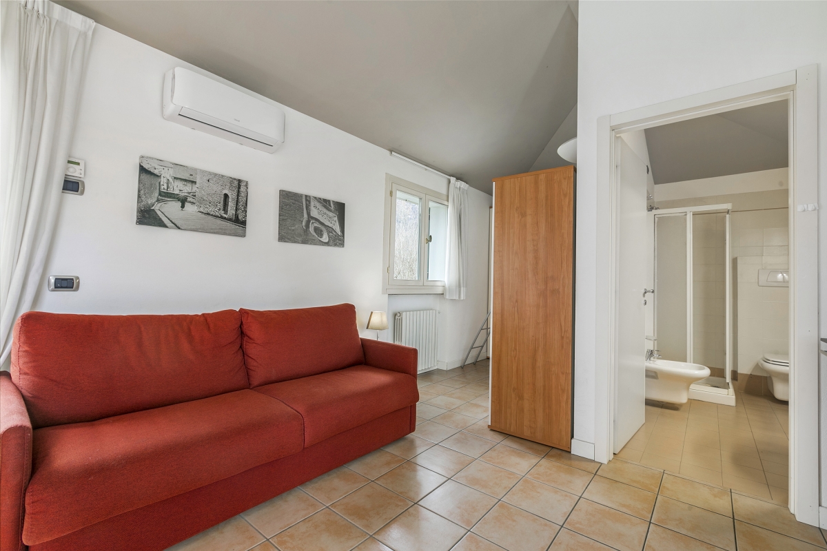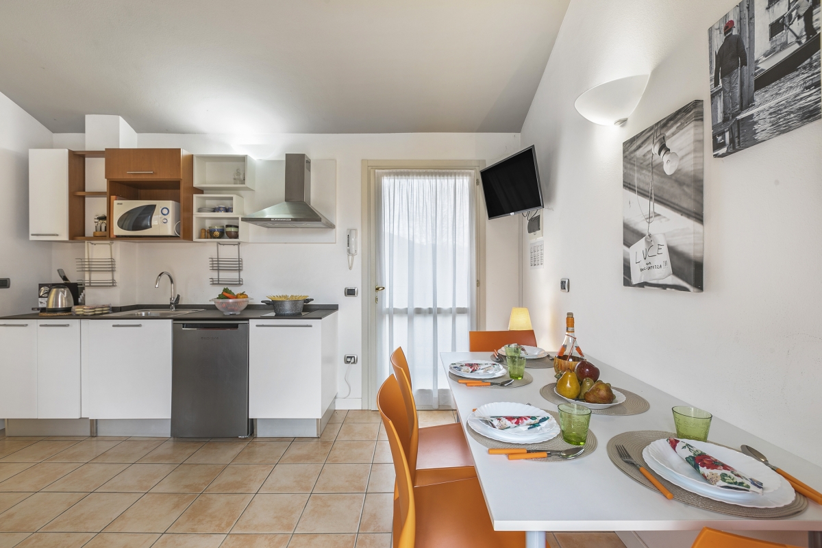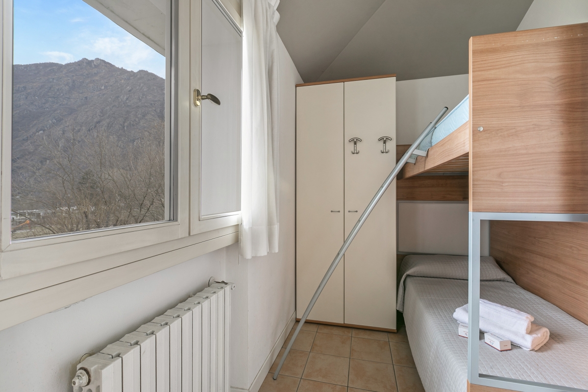 Located in a modern villa overlooking the Porto Letizia park, this lake-view studio offers a laid-back holiday setting for couples and family groups of 4. Inside, the apartment offers an open plan layout, comprising a living room with a double sofa bed alongside a basic kitchenette with a dining area for 4 and a set of bunk beds. The living area also leads directly out onto a private balcony terrace. A modern fitted bathroom with a bath/shower completes the internal layout of this , budget-friendly apartment. Wi-Fi and Free guest parking are also available for added convenience. Amenities • Wi-Fi • Electric Radiators • Clothes horse • Pets considered (upon request) • Private Balcony • Communal resort facilities • On-site coin-operated launderette • Free guest parking • Free bike rental • No wheelchair access* Location Located in Porlezza on Lake Lugano, the villa apartment is situated within the park of Porto Letizia. The family-friendly resort enjoys a lakeside public park with meandering footpaths and a communal beach with SUP and watersport hire, 2 children’s play areas and the main Palazzo building with on-site reception, a stylish café bar, Panama Italian restaurant and more. From the resort’s central location along ‘Via Prati’, guests will easily be able to reach the town amenities, the bus and ferry links and the main lake road of Porlezza (2-5 minutes walk away). Perfect for a fun and varied holiday on the Italian-Swiss Lakes, the resort is within easy driving distance from the year-round lake capital of Lugano and the picturesque small city of Menaggio on Lake Como (22-28 minutes drive away).
