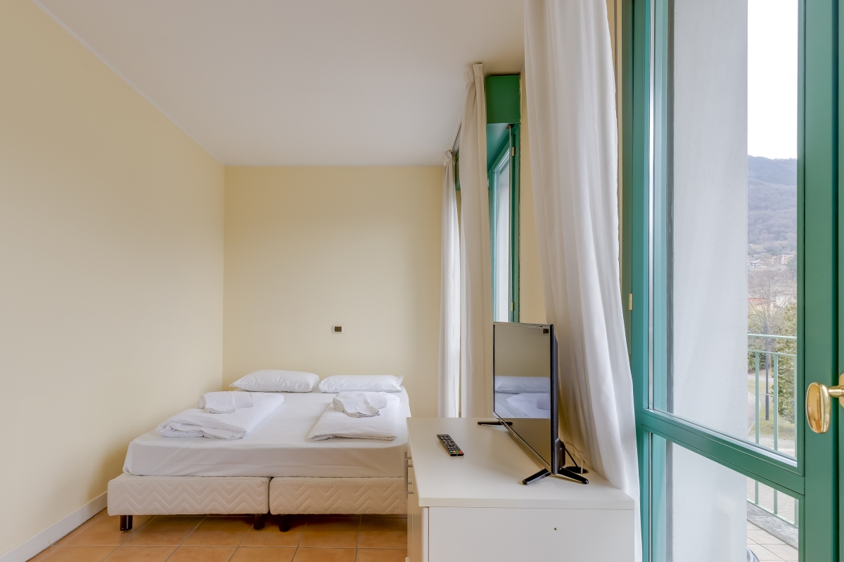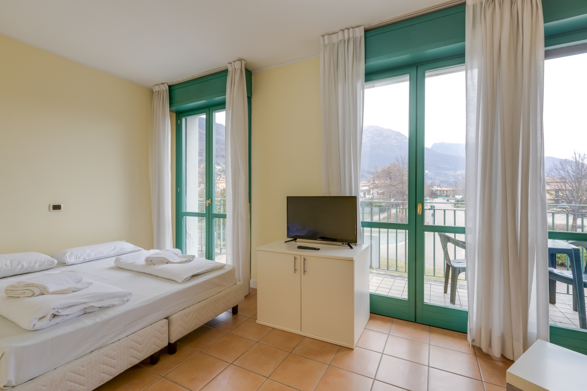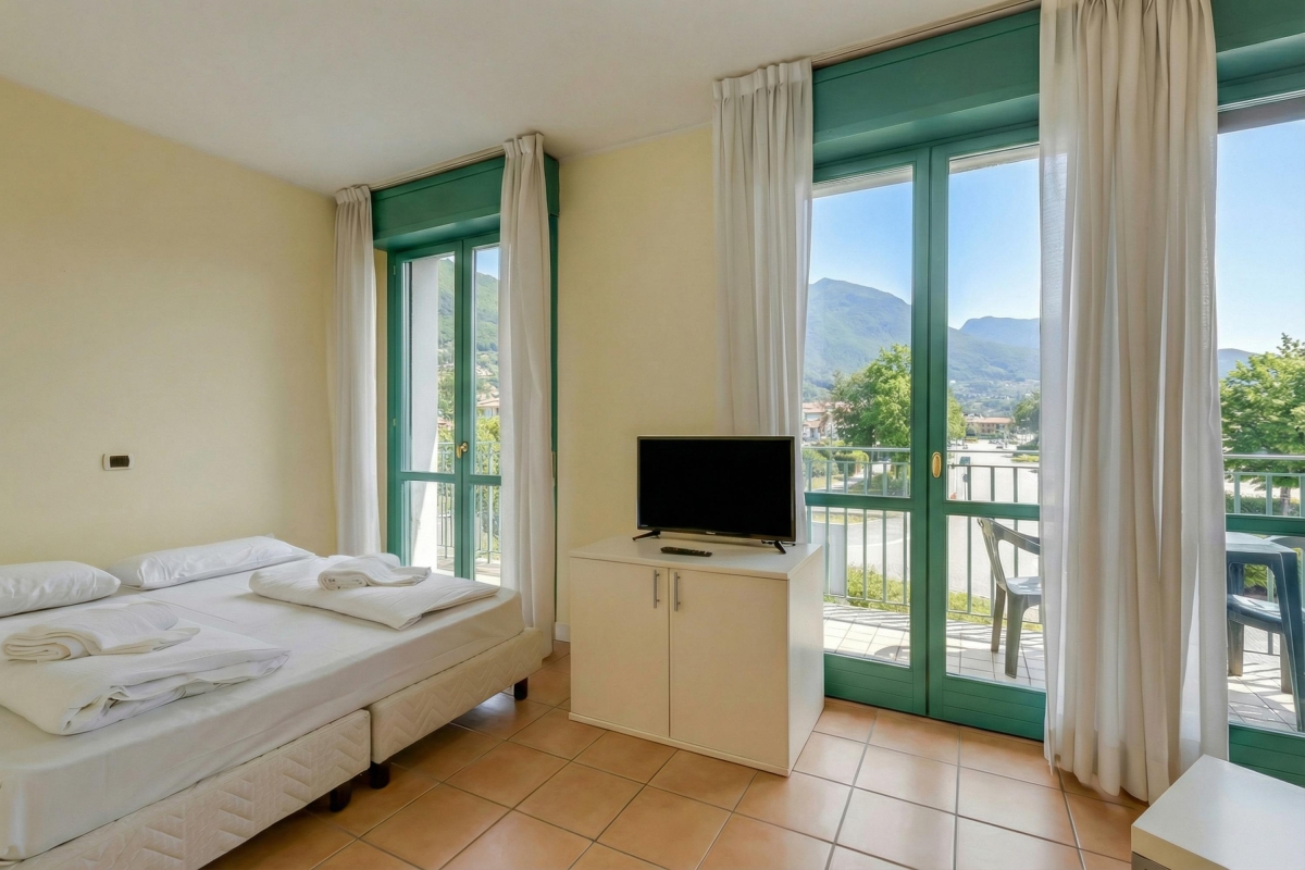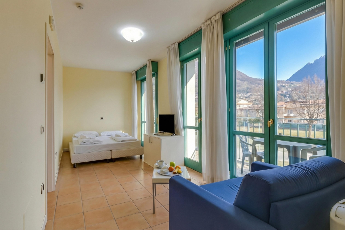 Located within the main Palazzo building, this welcoming balcony retreat is perfect for 2. Inside, the living space offers an open-plan layout, ideal for relaxed holiday vibes. Air conditioning also complements the living area, which comprises a double sofa bed and a modern kitchen cum diner. This is accompanied by a bathroom with bath/shower along with a WC and bidet. Outside, the mountain-view balcony terrace offers the perfect laid-back setting for enjoying a scenic lunch with family and friends. The apartment is easily reached by lift within the main Palazzo of Porto Letizia. Amenities • Air-conditioning • Central Heating • Private balcony • Lift access • Communal resort facilities (Free bike rental for 2 hours/day, ) • On-site coin-operated launderette • Large Parking Area • Wi-Fi Access Location- Located in Porlezza on Lake Lugano, the balcony apartment is situated within the main 4-storey Palazzo of Porto Letizia. The family-friendly resort enjoys a lakeside public park with meandering footpaths and a communal beach with SUP and watersport hire, 2 children’s play areas and the main Palazzo building with on-site reception, a stylish café bar, Panama Italian restaurant and more. From the resort’s central location along ‘Via Prati’, guests will easily be able to reach the town amenities, the bus and ferry links and the main lake road of Porlezza (2-5 minutes walk away). Perfect for a fun and varied holiday on the Italian-Swiss Lakes, the resort is within easy driving distance from the year-round lake capital of Lugano and the picturesque small city of Menaggio on Lake Como (22-28 minutes’ drive away).