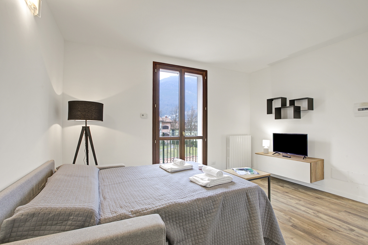 Ideal for laid-back family stays, this 2-bedroom apartment offers an effortless holiday ambience for 6. Inside, the easy-going retreat features a modern living room with a well-equipped kitchen for carefree holidays on Lake Lugano. There are 2 double bedrooms. There is also a double sofa bed in the living accompanied by a full family bathroom with a shower, WC and bidet. There is a second bathroom with a shower, WC and bidet. Outside, the apartment has a private balcony or garden for ultimate peace and relaxation. The apartment has free guest parking. Amenities • Electric Radiators • Pets considered • Communal resort facilities • On-site coin-operated launderette • Free guest parking • Free bike rental • No wheelchair access* Location Located in Porlezza on Lake Lugano, the apartment is situated within the park of Porto Letizia. The family-friendly resort enjoys a lakeside public park with meandering footpaths and a communal beach with SUP and watersport hire, 2 children’s play areas and the main Palazzo building with on-site reception, a stylish café bar, Panama Italian restaurant and more. From the resort’s central location along ‘Via Prati’, guests will easily be able to reach the town amenities, the bus and ferry links and the main lake road of Porlezza (2-5 minutes walk away). Perfect for a fun and varied holiday on the Italian-Swiss Lakes, the resort is within easy driving distance from the year-round lake capital of Lugano and the picturesque small city of Menaggio on Lake Como (22-28 minutes drive away).