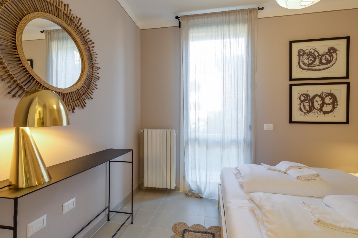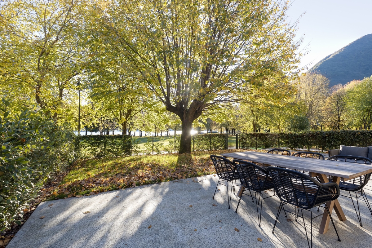Located within the scenic park of Porto Letizia, this lake-view villa apartment enjoys its own private garden, and inside is fully equipped for accommodating families and groups of 4. The open-plan living room offers an elegant ambience with a modern sofa bed and a complete, functional kitchen. There are two double bedrooms (each furnished with a double bed). There are 2 bathrooms, each with a shower and toilet. Outside, the private garden offers a lovely family-friendly setting and can be directly accessed from the living room. Plus, the apartment has Wi-Fi access and free guest parking for added convenience. Amenities • WiFi access • Electric Radiators • Communal resort facilities • On-site coin-operated launderette • Free guest parking • Free bike rental • No wheelchair access • No pets Location Located in Porlezza on Lake Lugano, the 2-bedroom retreat is situated within the park of the Porto Letizia holiday residence. The shared family-friendly park features meandering footpaths, a communal beach with SUP and watersport hire, two children’s play areas and the main Palazzo building with on-site reception, stylish café bar, contemporary Panama Italian restaurant and more. From the resort’s central location along ‘Via Prati’, guests will easily be able to reach the town amenities, the bus and ferry links and the main lake road of Porlezza (2-5 minutes walk away). Perfect for a fun and varied holiday on the Italian-Swiss Lakes, the resort is within easy driving distance from the year-round lake capital of Lugano and the picturesque small city of Menaggio on Lake Como (22-28 minutes drive away).